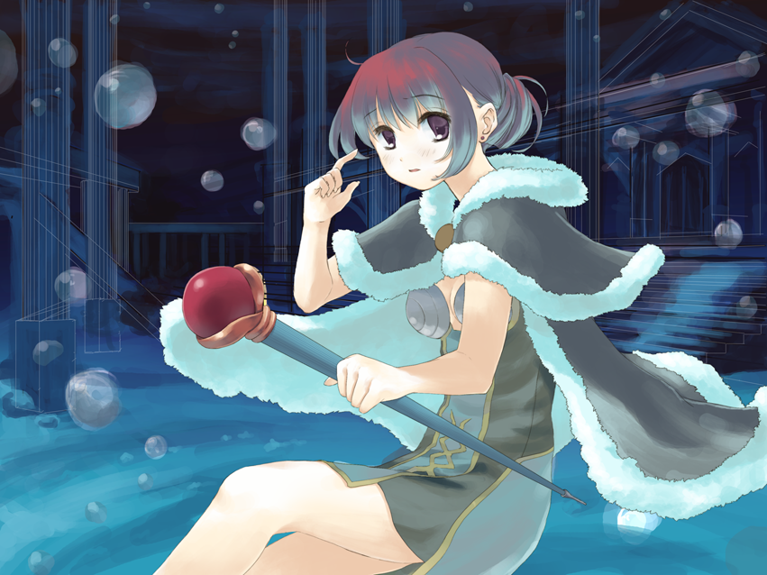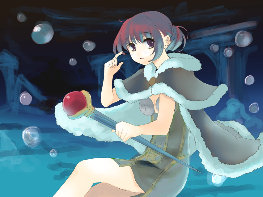 原点にかえろう。好きな物を描こう。ハイウィザードを描こう。そんな手順で決めたものの、漠然と「戦闘してるところかそのちょっと前」というテーマと、「ちょっと暗め」というカラーだけがあって、何も浮かばず。でもちょっとずつ「なんの杖を持たせるか?」「最近の杖で見た目はえるもの、ハイウィザードが装備できるもの」「迅雷杖どうかな?」「迅雷といえば魚貝、イズルード」「暗めにもマッチするし下層かな?」と、海底神殿を想定して描きました。まともに勉強した人間ではないのでアクティブなシーンなんて描けないなぁコマッタと色々四苦八苦して仕上げましたが、まあ、一応、なんとか見られるくらいにはなったかな?モンスターが描かれていないとか、そういうことはあまり考えないでください。