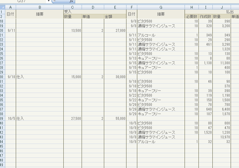 これらは一回の製薬ごとに出庫して記述しているので、原価計算としてはちょっと雑なのかな?と思っています。正しくはどうすればいいのかちゃんと勉強していないのでわかりません。もっと細かく分ければ一個当たりの正確な値に近づくのかな?